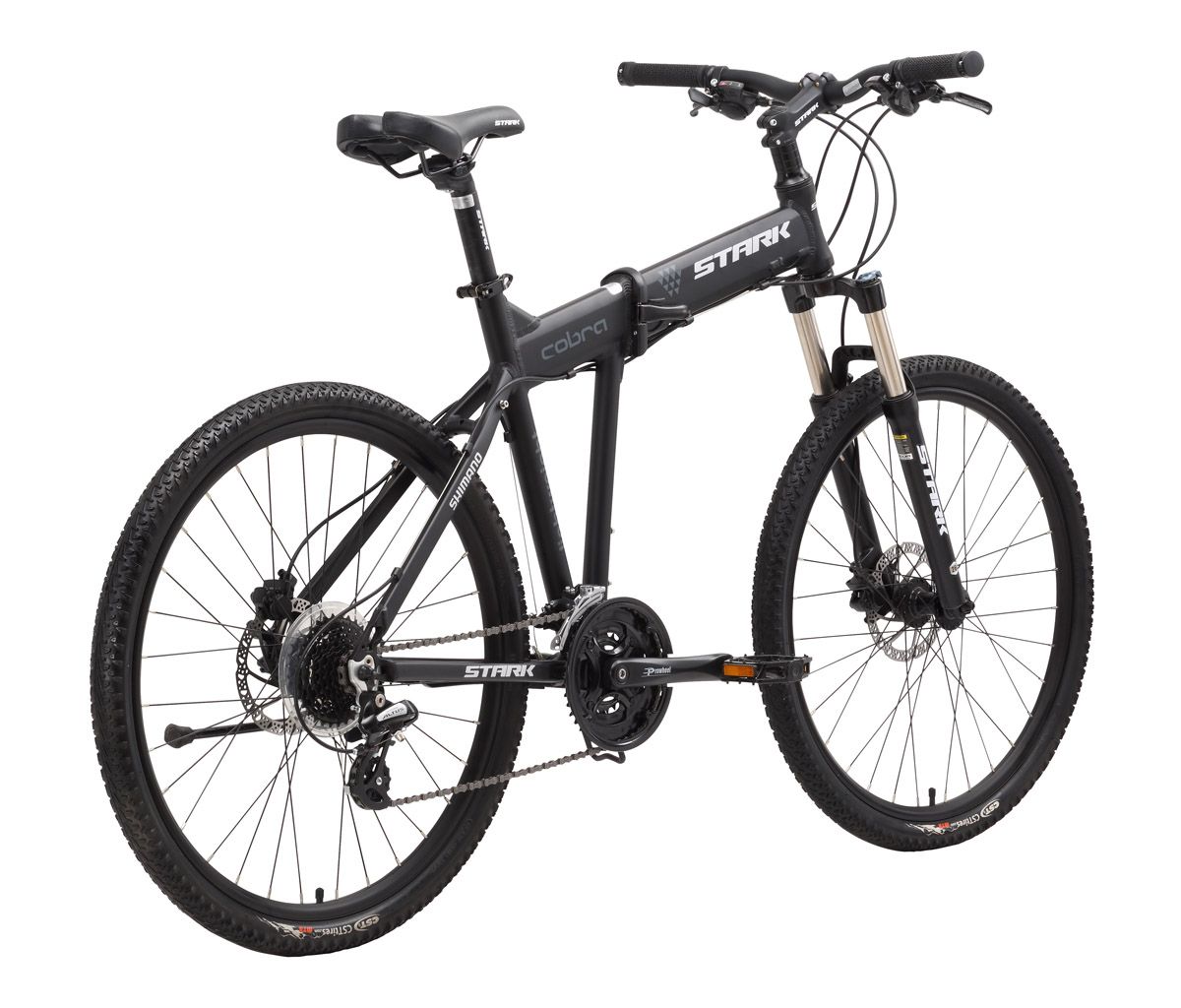 Складной велосипед на 26-ти дюймовых колёсах Stark Cobra HD позволит вам быстро переключиться от городского ритма к лесным тропинкам и горным кручам. Алюминиевый складной велосипед имеет малый вес и достаточно компактный, для перевозки в багажнике автомобиля. Техническое вооружение этого горного складного велосипеда включает в себя гидравлические дисковые тормоза Tektro, 24-х скоростную трансмиссию, собранную на оборудовании Shimano Altus/Acera, двойные алюминиевые обода и переднюю мягкую вилку с блокировкой и регулировкой жёсткости. Ценность складного велосипеда с 26-ти дюймовыми колёсами, трудно переоценить жителям крупных городов.